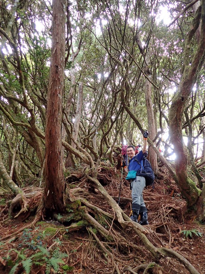 這三島連峰稜線上全是森氏杜鵑林,其特色是枝枒盤轉曲折,看過去非常有張力,如果適逢霧氣繚繞,會以為自己誤闖入了魔法森林。