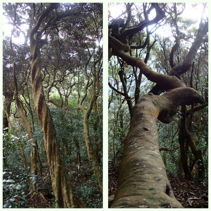這裡就是傳說中的狂風嶺嗎?我們其實也不確定,沒有標示,但明顯一條瘦稜,長滿了枝條扭結狀似舞動的杜鵑林。