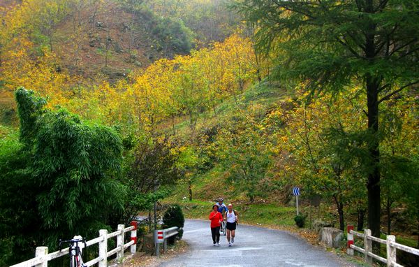 吆喝一聲,說,大家一起到杭徽古道跑一跑吧。全部人附和響應,只有我跟老沈偷懶,還是騎單車就好了。